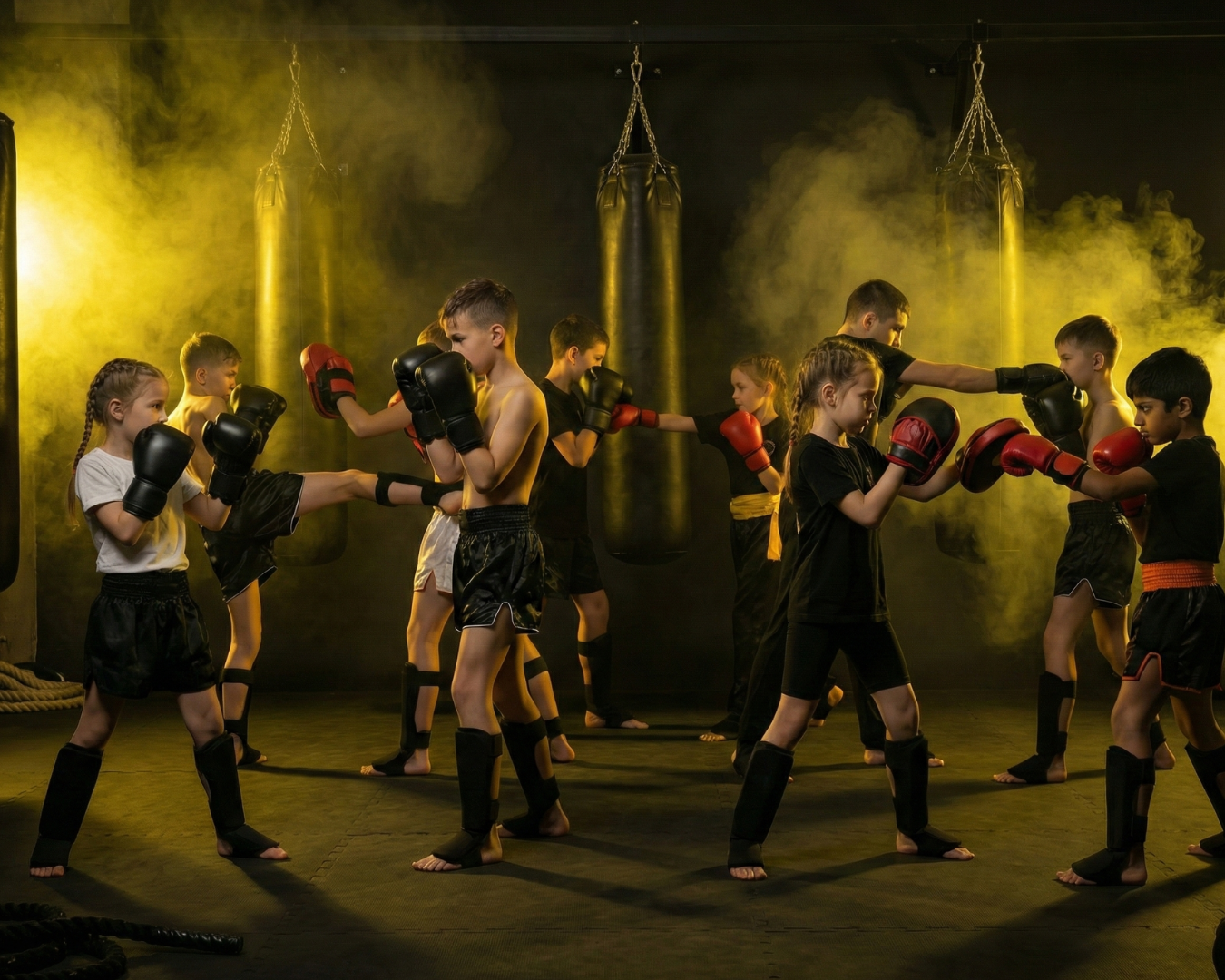 Kickboxing classes focus on improving fitness, endurance, strength, and coordination through dynamic striking based training.Students learn powerful punching and kicking techniques, movement control, and conditioning exercises in a safe and energetic environment.